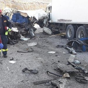 ووقع الحادث صباح اليوم الثلاثاء، عندما اصطدمت حافلة نقل صغيرة متجهة من قضاء “باش قلعة”، إلى مدينة وان، بشاحنة قادمة من الاتجاه المعاكس.
