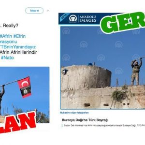 وفي منشور آخر، فبرك الإرهابيون صورة جندي تركي يحمل علم بلاده على قمة جبل “برصايا” بمنطقة عفرين، عقب تطهيره من الإرهابيين، يوم 28 يناير/كانون الثاني الجاري، حيث أضافوا راية تنظيم “داعش” الإرهابي على العلم التركي.