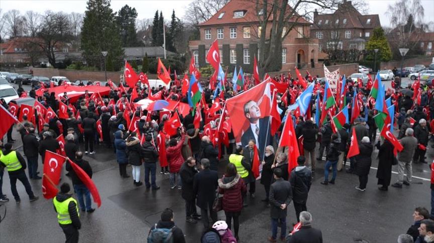وشارك 300 شخص، في المظاهرة التي نظمها فرع “اتحاد الديمقراطيين الأتراك الأوروبيين” في الدانمارك، وجمعيات أذرية وأخرى تابعة لتركمان العراق، أمام السفارة التركية في كوبنهاغن.