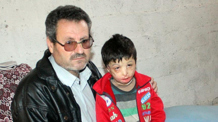 وبدأت حكاية الطفل الحسين، قبل عام ونصف، عندما ألقت مروحيات النظام السوري براميلها المتفجرة على منزله في محافظة حماة (وسط)، ما أدى إلى انهياره وإصابة الطفل بحروق، نقل على إثرها للعلاج في تركيا.