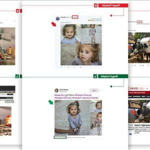 وتبيّن أن الصورة تعود لطفلة غزاوية، وسبق أن استخدمت في خبر بتاريخ 7 أغسطس/آب 2014، لكن أنصار التنظيم نسبوها لغصن الزيتون، زاعمين أنها في عفرين.