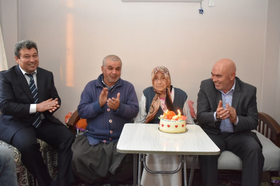 وزار رئيس بلدية حي “كاراإسالي” سعد الدين أصلان، منزل المعمرة أليف سونغون المولودة عام 1913، واحتفل معها بيوم مولدها.