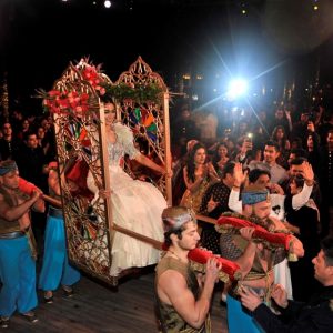 وحملت ليلة الإثنين، اسم “الليلة التركية”، حيث دخلت العروس قاعة العرس على عرش يحمله أربع رجال، وحفَلِت الليلة بالفقرات المستوحاة من الثقافتين التركية والهندية، وارتدى المدعوون الملابس الهندية التقليدية.