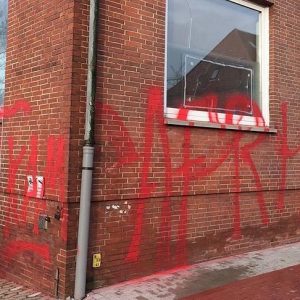وخلال الاعتداء، جرى تشبيه الاتحاد بـ”حصان طروادة” عبر أشعة الليزر التي تم عكسها على جدران المسجد، كما تمت كتابة عبارات ذات مضمون سياسي، ضد عملية “غصن الزيتون”، التي تنفذها تركيا لتطهير منطقة عفرين السورية من إرهابيي “ب ي د/بي كا كا” و”داعش”.