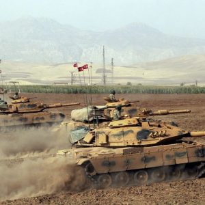 Turkish army tanks move during exercises in Silopi, near the Habur border gate with Iraq, southeastern Turkey, Monday, Sept. 25, 2017. Turkey's President Recep Tayyip Erdogan threatened military intervention in response to Iraqi Kurdish region's referendum on independence. Erdogan on Monday said Turkey would take political, economic as well as military measures against Iraqi Kurds' steps toward independence and also suggested that Turkey could halt oil flows from a pipeline from northern Iraq.(DHA-Depo Photos via AP )