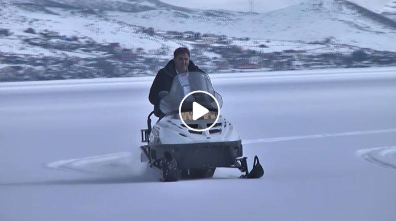 موطنون أتراك يتزلجون على بحيرة جلدر في محافظة قارص بعد تجمدها بالكامل، حيث بلغت درجات الحرارة في المحافظة عشرين درجة مئوية تحت الصفر.