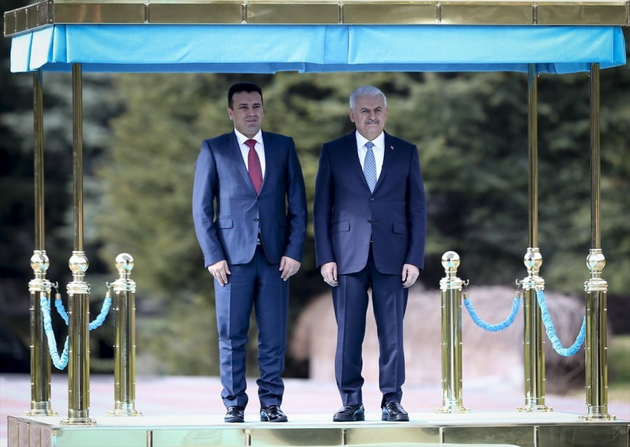 ستقبل رئيس الوزراء التركي بن علي يلدريم، نظيره المقدوني زوران زائيف، في قصر جانقايا، بالعاصمة أنقرة وبدأت المراسم بعزف النشيدين الوطنيين لكلا البلدين، ثم حيا زائيف، كتيبة المراسم في فوج الحرس الرئاسي، باللغة التركية وبعد أخذ صور أمام عدسات المصورين، عقد الجانبان اجتماعا ثنائيا،أعقبه اجتماعا على مستوى وفدي البلدين.
