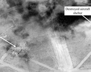 Battle damage assessment image of Shayrat Airfield, Syria, is seen in this DigitalGlobe satellite image, released by the Pentagon following U.S. Tomahawk Land Attack Missile strikes from Arleigh Burke-class guided-missile destroyers, the USS Ross and USS Porter on April 7, 2017. DigitalGlobe/Courtesy U.S. Department of Defense/Handout via REUTERS ATTENTION EDITORS - THIS IMAGE WAS PROVIDED BY A THIRD PARTY. EDITORIAL USE ONLY. NO RESALES. NO ARCHIVE. MANDATORY CREDIT. TPX IMAGES OF THE DAY