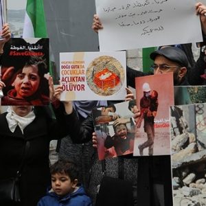 شارك عشرات السوريين، اليوم الخميس، في وقفة تضامنية مع الغوطة الشرقية، أمام القنصلية الروسية في إسطنبول، وسط هتافات وصرخات منددة بالدعم الروسي لنظام بشار الأسد.