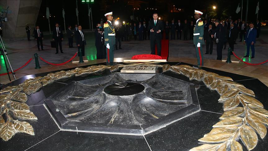 وعقب مراسم الاستقبال الرسمية في المطار توجه أردوغان، إلى مقام الشهيد (الجندي المجهول) برفقة رئيس مجلس الشعب الجزائري (الغرفة الثانية للبرلمان) عبد القادر بن صالح.