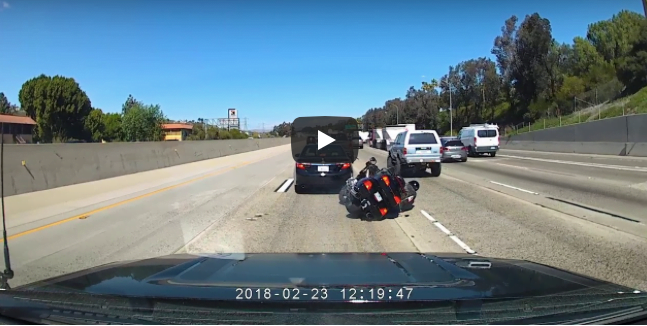 نجا قائد دراجة نارية من الموت بأعجوبة، بعد تعرضه لحادث تصادم على أحد الطرق السريعة في ولاية كاليفورنيا الأمريكية.