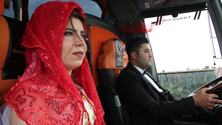 بدورها، قالت تقير أوغلو، إنها حققت حلمها بقيادة حافلة سياحية خلال حفل زواجها.