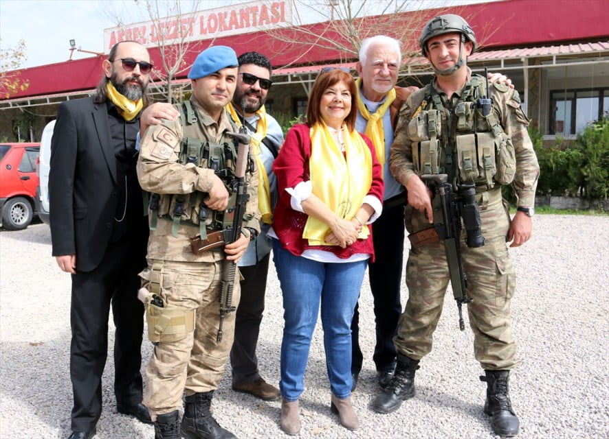 وزار مسرحيون يعملون في مسارح المدينة التابعة لبلدية إسطنبول الكبرى، أمس، القوات المسلحة في ولاية هاطاي، من اجل رفع معنويات الجنود المشاركين في عملية غصن الزيتون، بحسب الإعلام التركي.