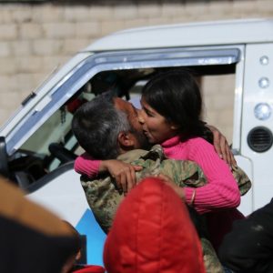 ورصدت الصور لحظات اللقاء الذي جمع بين بعض الأسر في “كفرمز” التابعة لبلدة “شران”، وأقاربهم في “الجيش السوري الحر”، وسط دموع الفرح وإطلاق الزغاريد.