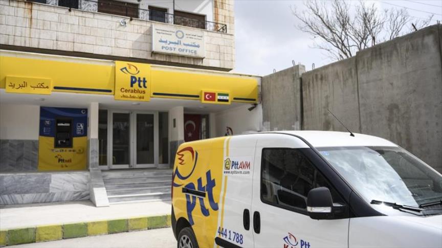 ويستخدم سكان المنطقة واللاجئون السوريون في تركيا، مؤسسة البريد الحكومية التركية، في تلبية احتياجاتهم من تحويل الأموال والشحن.