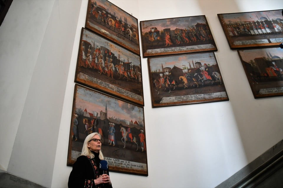 ونوهت مديرة المتحف، بأن اللوحات تصوّر فخامة الموكب الذي كان يرافق السلطان محمد الرابع في رحلات الصيد التي كان يجريها إلى أدرنة (ولاية شمال غربي تركيا) في خريف 1657.