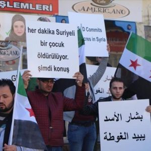 تظاهر العشرات من السوريين والأتراك اليوم الأحد، أمام القنصلية الأمريكية في مدينة إسطنبول، للتنديد بالهجمات التي تتعرض لها الغوطة الشرقية من قبل النظام السوري.