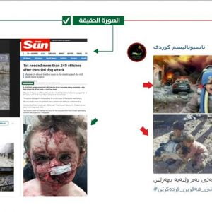 وتبين أن الصورة التي يستخدمها أنصار التنظيم الإرهابي على وسائل التواصل الاجتماعي، هي لرضيعة عمرها عام ونصف هاجمها كلب في بريطانيا في 16 يونيو/ حزيران 2015، ونشرت صورتها صحيفة “ذا صن” مع تفاصيل الحادث.
