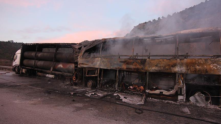 وقالت “أمينة غونغور” إحدى الناجيات من الحادث، للأناضول، “لقد كان كل ركاب الحافلة نائمين، أنا وحدي كنت مستيقظة ومشغولة مع طفلي، حيث سمعت صوت انفجار تهشمت معه كل نوافذ الحافلة، واندلع حريق في مؤخرة الحافلة”.