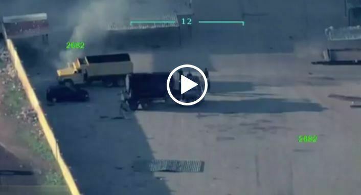 وكشفت المشاهد التي التقطتها طائرات الجيش التركي في إطار عملية غصن الزيتون، الإرهابيين الذين يواصلون منع المدنيين من مغادرة المنطقة والانتقال إلى أماكن آمنة، خلال حرقهم لصهريج وشاحنة وسيارة.