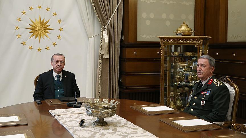استقبل الرئيس التركي رجب طيب أردوغان، رئيس هيئة الأركان العامة خلوصي أكار، في لقاء هو الأول بينهما عقب تحرير مركز مدينة عفرين.