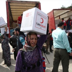 يواصل الهلال الأحمر التركي، تقديم المساعدات الإنسانية للسكان المدنيين بمدينة عفرين ومحيطها، شمالي سوريا.