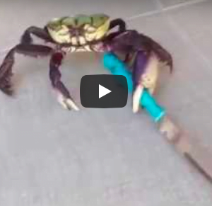 تداول رواد وسائل التواصل الاجتماعي فيديو يظهر سلطعونا يدافع عن نفسه باستخدام السكين بمهارة عالية منعا من التهامه.