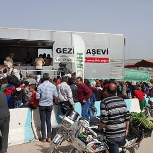 يعمل مطبخ متنقل تابع لهيئة الإغاثة الإنسانية التركية (İHH) في مدينة عفرين السورية، بالطاقة القصوى، لتوفير وجبات ساخنة، للمحتاجين من أهالي المدينة.