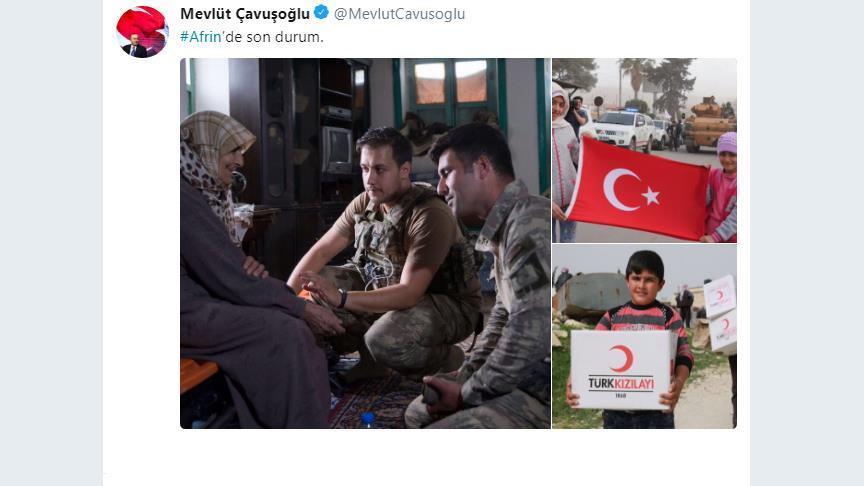 أطلع وزير الخارجية التركي مولود جاويش أوغلو، السبت، الرأي العام العالمي على سير الحياة الطبيعية في منطقة عفرين السورية من خلال نشره صور التقطتها عدسات وسائل الاعلام التركية.