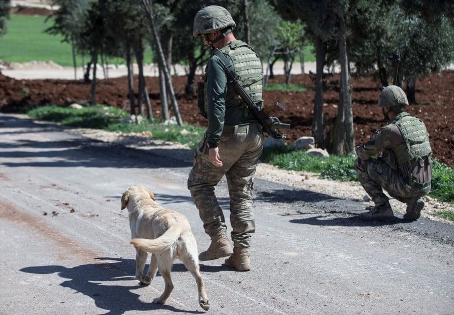 عثرت القوات المسلحة التركية، بمساعدة كلب مدرب على الكشف عن المتفجرات “ليلاك”، على عبوتين ناسفتين في مدينة عفرين شمالي سوريا، لتقوم بتفجيرهما.