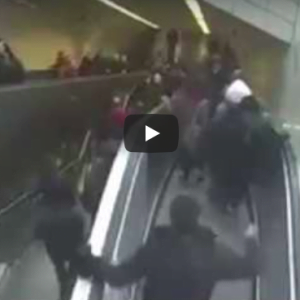 ويظهر الفيديو عددا من الأشخاص وهم ينزلون على السلم الكهربائي يوم 27 فبراير، قبل أن يسقطوا جميعا، بعدما حدث تشقق وتوقف السلم عن العمل.