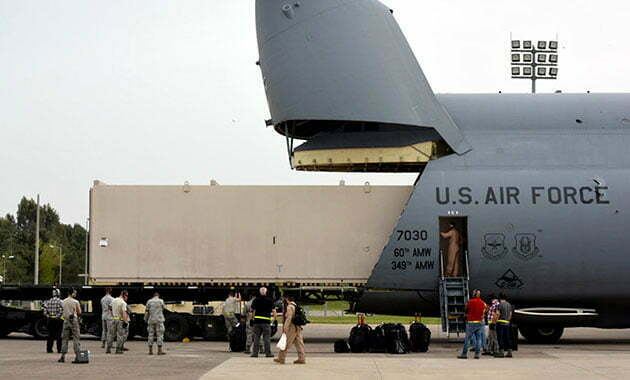 وقدمت الطائرة سي-5 أم التابعة إلى اسطول الشحن الجوي الثاني والعشرون من قاعدة ترافيس الجوية غي٬ 28 مارس “أذار” لنقل الحاوية إلى مكان أخر لتنفيذ عمليات حربية٬ ولم يتم الكشف عن اسم الدولة التي تم نقل الحاوية إليها.