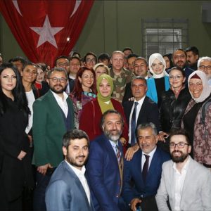 وأدى مشاهير من الفنانيين والرياضيين والممثلين الأتراك، بمشاركة الرئيس رجب طيب أردوغان، أغنيات شعبية داعمة لعملية “غصن الزيتون”، أثناء زيارة لوحدات الجيش في منطقة حدودية مع سوريا جنوبي البلاد، الأحد الماضي.