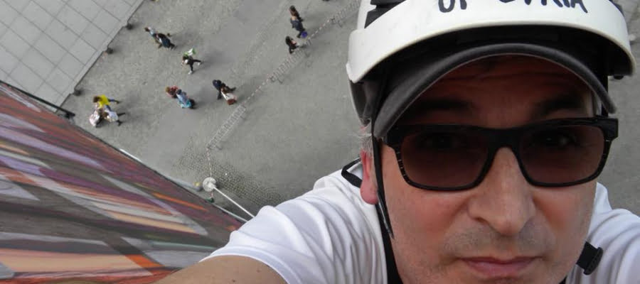 علَّق نفسه في الهواء 4 ساعات.. مصور فرنسي يعرِّض حياته للخطر تضامناً مع ضحايا دوما