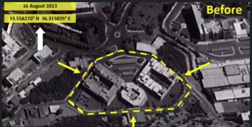 وأظهرت التسجيل الذي نشره موقع Image Sate International على حسابه في تويتر الأضرار التي لحقت بمركز “جمرايا” السوري للأبحاث العلمية، المخصص لبرنامج الأسلحة الكيماوية.