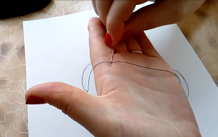 ولكي تتمكن من إدخال الخيط داخل الإبرة بكل سهولة، يجب عليك وضع الخيط على كف يدك، ثم تبدأ بفرك الإبرة بالخيط كما هو موضح في الفيديو.