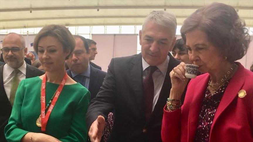 وفي زيارتها للقسم التركي، الأحد، أبدت صوفيا -والدة ملك إسبانيا الحالي فيليبي السادس- رغبتها في احتساء القهوة التركية، وهو ما تم بالفعل.