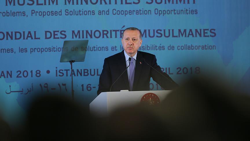 جاء ذلك في كلمة ألقاها الرئيس التركي خلال مشاركته في أعمال القمة العالمية حول الأقليات المسلمة التي عُقدت اليوم الاثنين، بمدينة إسطنبول.