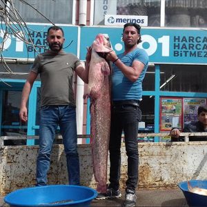 اصطاد مواطن تركي سمكة عملاقة من نوع “السلور” تزن 35 كيلوغراما، من نهر “أراس” في ولاية قارص شمال شرقي البلاد.