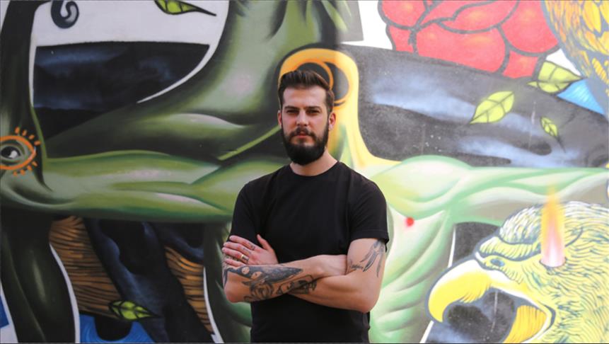 توناي قال، في مقابلة مع الأناضول، إنه بدأ بالرسم على طريقة فن “الجرافيتي” منذ عام 2005، معربا عن حبه الشديد لهذا النوع من الرسومات.