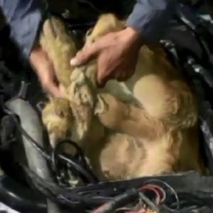 واشار البيان الى ان الغطاء البلاستيكي الموضوع على اسطوانة محرك السيارة كان يتحرك اثناء عملية الفحص. وتبين بعد فتح الغطاء وجود عجلين مربوطتين اقدامهما في مقصورة خاصة داخل المحرك.