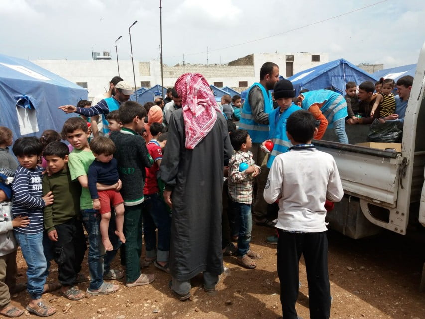 وأشار إلى أنهم يقدمون لمهجري الغوطة الشرقية بمدينة الباب وجبة إفطار بشكل متواصل، إلى جانب مساعدات غذائية أخرى. وتابع: “شاهدنا بعض الأطفال يتناولون الموز دون تقشيره، هذا محزن جدا”. وأشار إلى أنهم سيقدمون في اليومين القادمين أحذية لـ 250 ألف طفل.