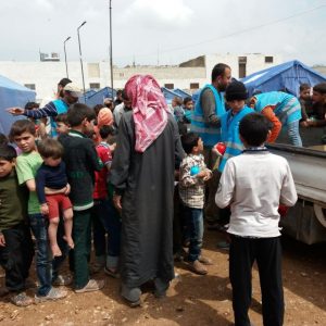 وأشار إلى أنهم يقدمون لمهجري الغوطة الشرقية بمدينة الباب وجبة إفطار بشكل متواصل، إلى جانب مساعدات غذائية أخرى. وتابع: “شاهدنا بعض الأطفال يتناولون الموز دون تقشيره، هذا محزن جدا”. وأشار إلى أنهم سيقدمون في اليومين القادمين أحذية لـ 250 ألف طفل.