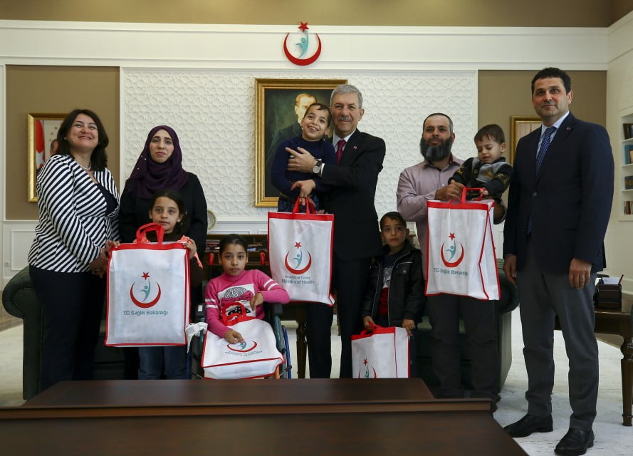 استقبل وزير الصحة التركي أحمد ديميرجان عائلة فلسطينية في العاصمة أنقرة يوم الثلاثاء، بعد وصولهم إلى تركيا لعلاج أطفالهم الثلاثة على نفقة الحكومة التركية
