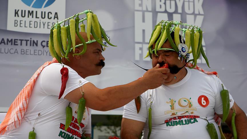 وفاز المتسابق “حسن أوزديل” بالمرتبة الأولى إثر تناوله 315 غراما من الفلفل الحار في 3 دقائق، فيما حلّ “حسين أكشيت” ثانيا بـ 299 غراما، و”محمد أتاش” ثالثا بـ 279 غراما.
