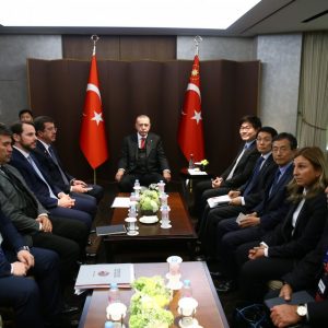 استقبل الرئيس التركي رجب طيب أردوغان، اليوم الأبعاء، مسؤولين من شركتي “هيونداي” الشهيرة، و”SK Engineering Construction” لهندسة البناء، على هامش زيارته الرسمية لكوريا الجنوبية.