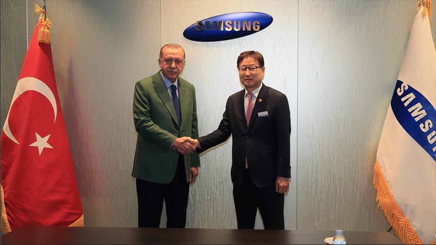 وقبل جولته في مدينة سامسونج الالكترونية، كان أردوغان استقبل مدراء شركات هانواه ودايليم وجي إس.