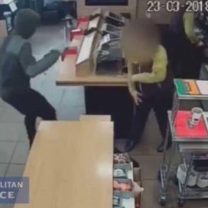 ونشرت صحيفة “ذا ميرور” لقطات كاميرات المراقبة للمطعم الواقع غرب العاصمة الإنجليزية لندن، التي أظهرت الرجل الملثم وهو يحاول الدخول للمطبخ الخلفي، وبيده سكينا صغيرة.
