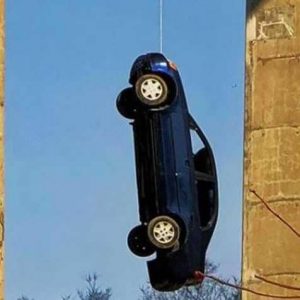 وعثرت الشرطة على سيارة زرقاء من طراز سيدان، وهي تتدلى بسلك معدني من جسر ميلوود في تورونتو، مما دفع السلطات للاعتقاد بأن الأمر جزء من تصوير فيلم في المنطقة، ليتضح لاحقا بأن ذلك غير صحيح.