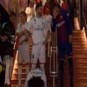وذكرت صحيفة “ماركا” الإسبانية الرياضية أنه أثناء خروج اللاعبين من الاستراحة بين الشوطين، توجه بيكيه بحديث سريع إلى ناتشو الذي كان يقف بمحاذاته، لكن كلمات بيكيه لم تسمع لأن لاعب النادي الكتالوني كان يضع يده على فمه.